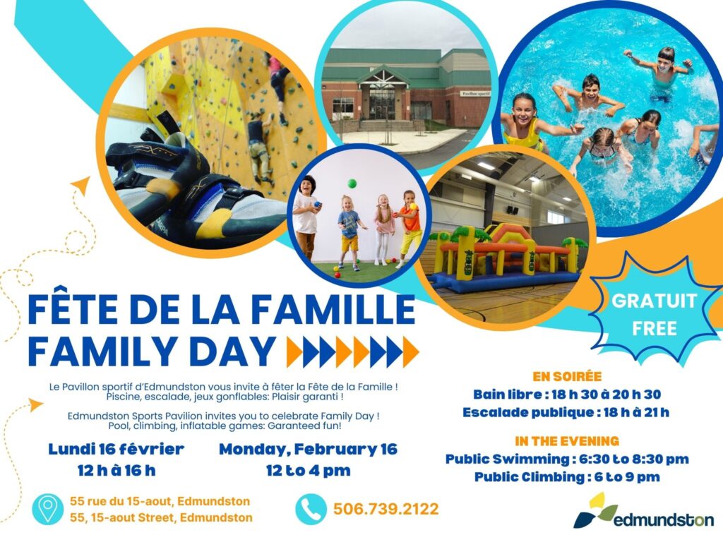 Le Pavillon sportif d’Edmundston ouvre grand ses portes pour souligner la Fête de la Famille le lundi 16 février, avec une programmation entièrement gratuite pensée pour petits et grands.